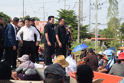 นายกรัฐมนตรีและรัฐมนตรีว่าการกระทรวงมหาดไทย พร้อมคณะ ลงพื้นที่ตรวจติดตามสถานการณ์น้ำท่วมและรับฟังปัญหา จากพี่น้องประชาชนชาวอำเภอเสนา บริเวณวัดบันไดช้าง อ.เสนา และพื้นที่ ต.ท่าดินแดง อ.ผักไห่ จ.พระนครศรีอยุธยา พร้อมมอบถุงยังชีพ จำนวน 1,000 ชุด นายกฯ ย้ำ! รัฐบาลพร้อมเพิ่มงบช่วยผู้ประสบอุทกภัย “มากกว่า 9,000 บาท” ดูแลต่อเนื่องตามระยะเวลาน้ำท่วม จนกว่าสถานการณ์จะคลี่คลาย