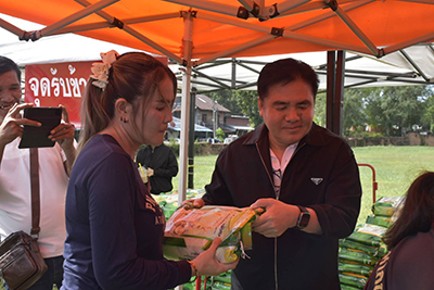 ภายในงานยังมีการ แจกข้าวสารให้กับประชาชน สร้างความดีใจและบรรยากาศแห่งการแบ่งปันตลอดทั้งวัน หลายครอบครัวเดินถือถุงข้าวสาร พร้อมรอยยิ้ม สะท้อนความสุขของคนในชุมชน