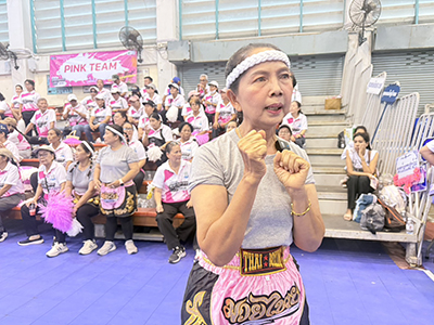 นางเตือนใจ ดีรบรัมย์ ประธานชุมชนวัดธรรมสามัคคี ในฐานะหัวหน้าสีชมพู โดยมีสมาชิกจาก 10 ชุมชนเมืองพัทยา ประกอบด้วย 1.ชุมชนบงกช 2.ชุมชนอรุโณทัย 3.ชุมชนหนองใหญ่บ้านบน 4.ชุมชนหนองใหญ่บ้านล่าง 5.ชุมชนวัดธรรมสามัคคี 6.ชุมชนบ้านเนินรถไฟ 7.ชุมชนเพนียดช้าง 8.ชุมชนต้นกระบก 9.ชุมชนวอล์กกิ้งสตรีท และ 10.ชุมชนเขาน้อย