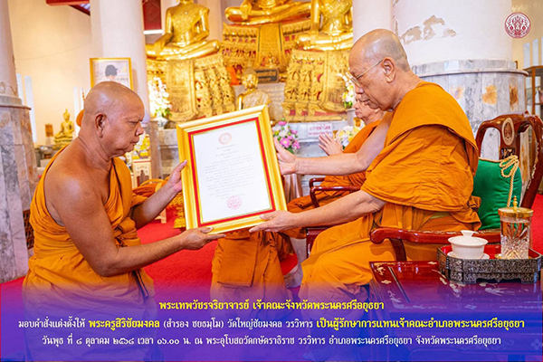 อ่านข่าว...ท่านเจ้าคุณพระเทพวัชรจริยาจารย์ เจ้าคณะจังหวัดพระนครศรีอยุธยา เมตตามอบคำสั่งฯ แต่งตั้ง ผู้รักษาการแทนเจ้าคณะอำเภอพระนครศรีอยุธยา